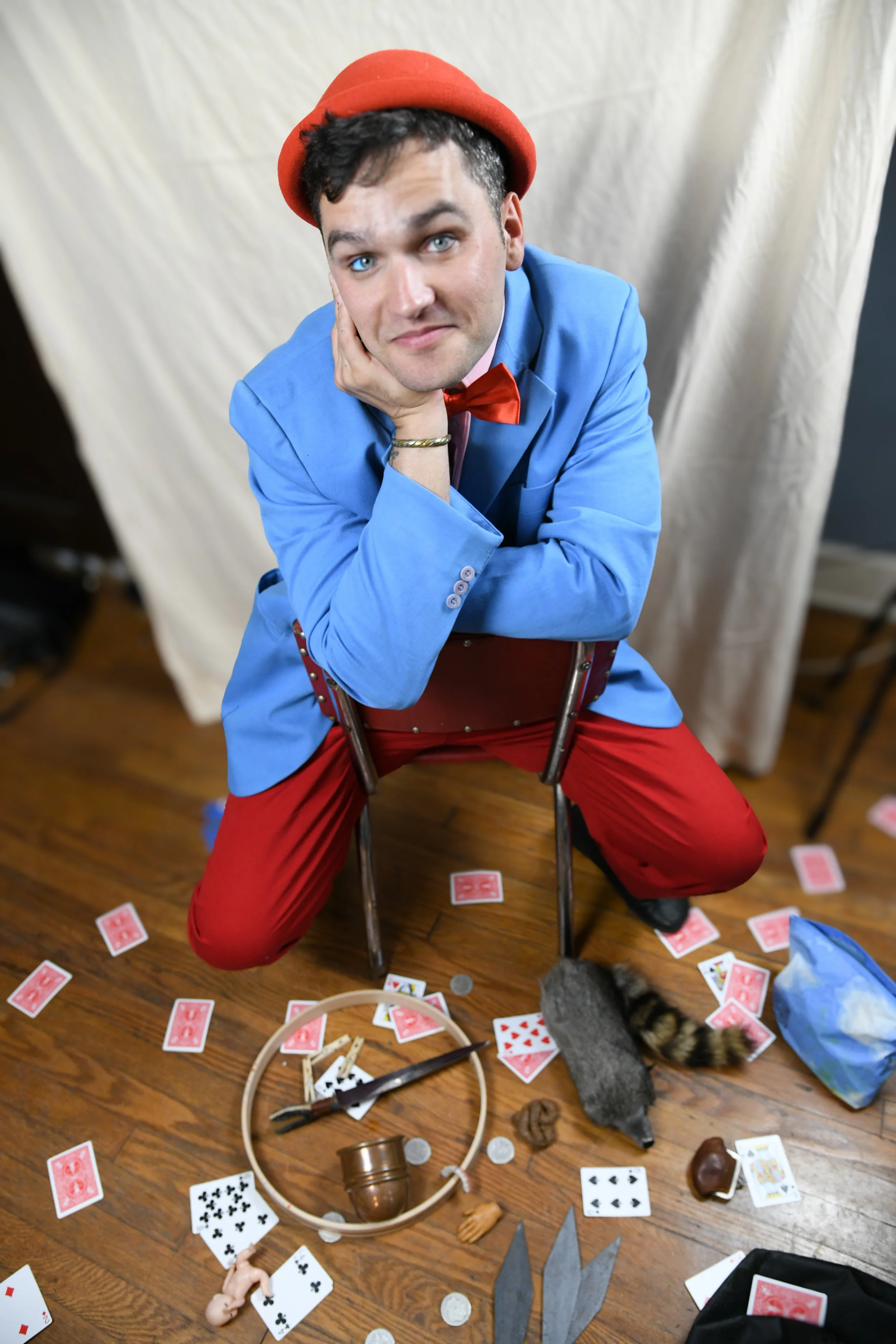 Come learn a variety of odd little tricks perfect for the professional performer or a beginner wishing to add a little magic to daily life. Students will be encouraged to learn in a light hearted and loose way, as we explore new skills and tricks while embracing being silly. We will go through things suitable for a dinner table, for a bar, an elevator, small venues or street performance. Some slapstick, some magic, and some easy to do juggling. Feel free to bring an object to work with that is of interest to you!